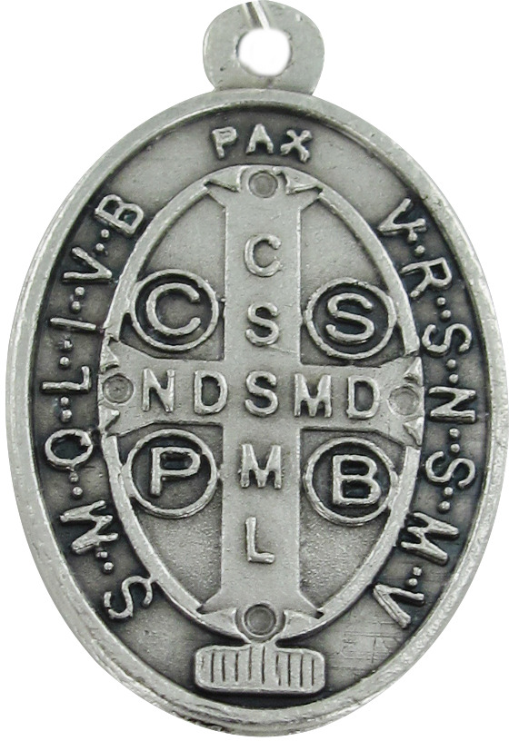 Medalla ovale raffigurante su una faccia San Benedetto e nell'altra la croce del santo.