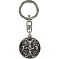 Portachiavi della medaglia di San Benedetto, realizzato in metallo argentato ossidato.