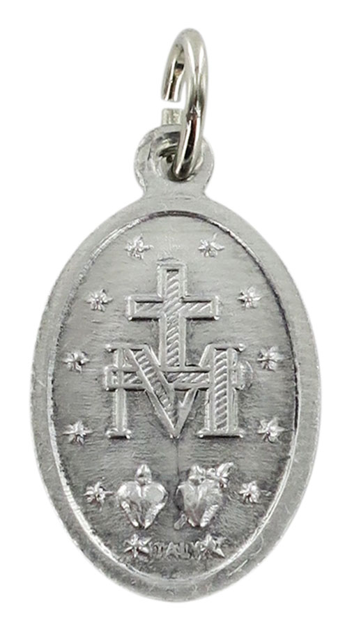 Medaglia Madonna Miracolosa in alluminio con smalto azzurro - 1,8 cm
