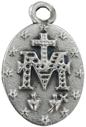 Medaglia raffigurante la Madonna Miracolosa in metallo.