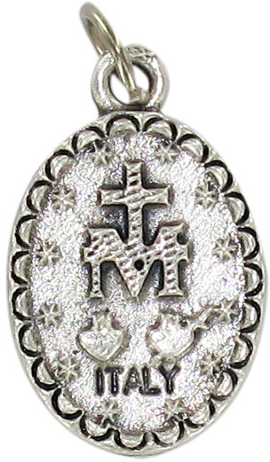 Medaglia ovale raffigurante la Madonna Miracolosa in metallo.