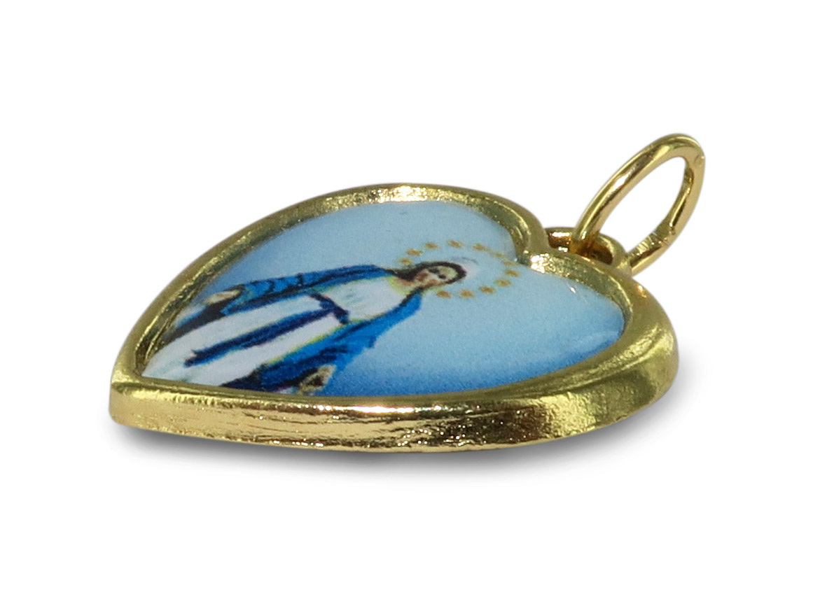 L'immagine della Madonna Miracolosa è una stampa su carta rivestita da una resina trasparente che rende i colori lucidi e ben visibili.
