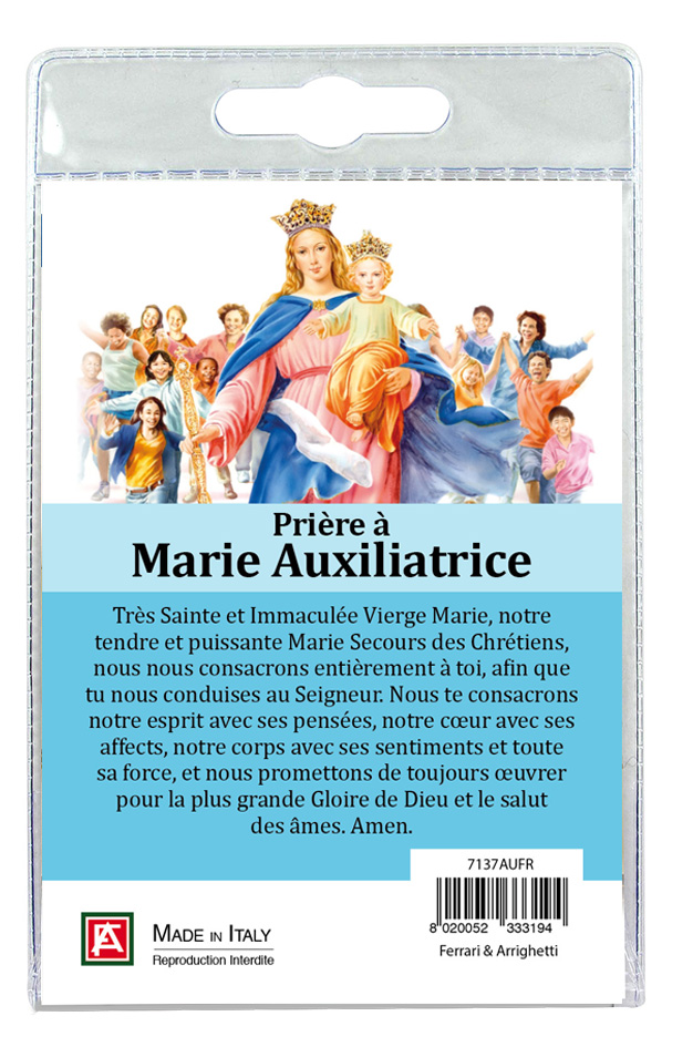 Medaglia Madonna Ausiliatrice con laccio e preghiera in francese