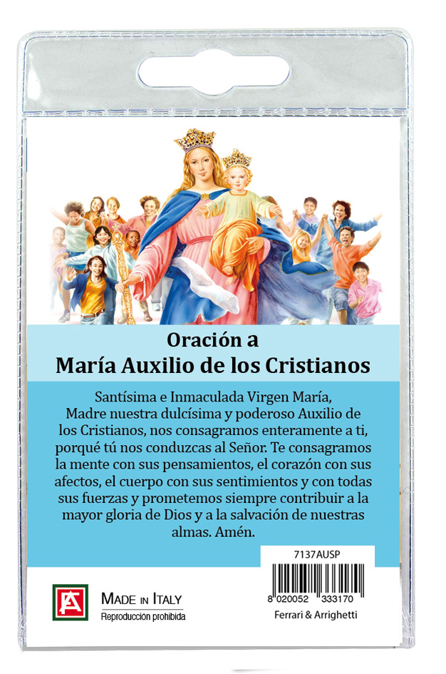 Medaglia Madonna Ausiliatrice con laccio e preghiera in spagnolo