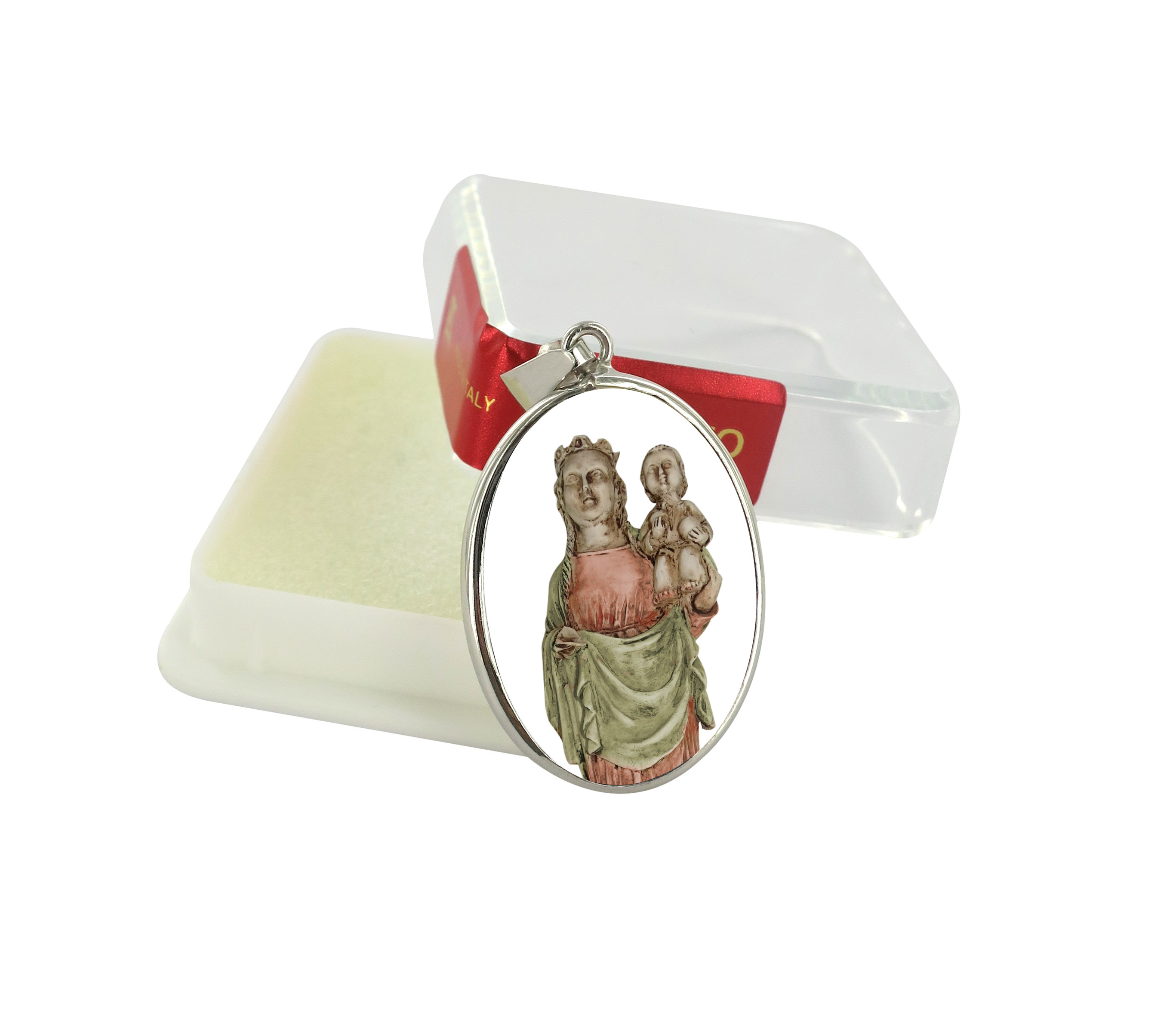 La medaglia è in porcellana con stampata una immagine rappresentante Madonna della Basilica del Mar.