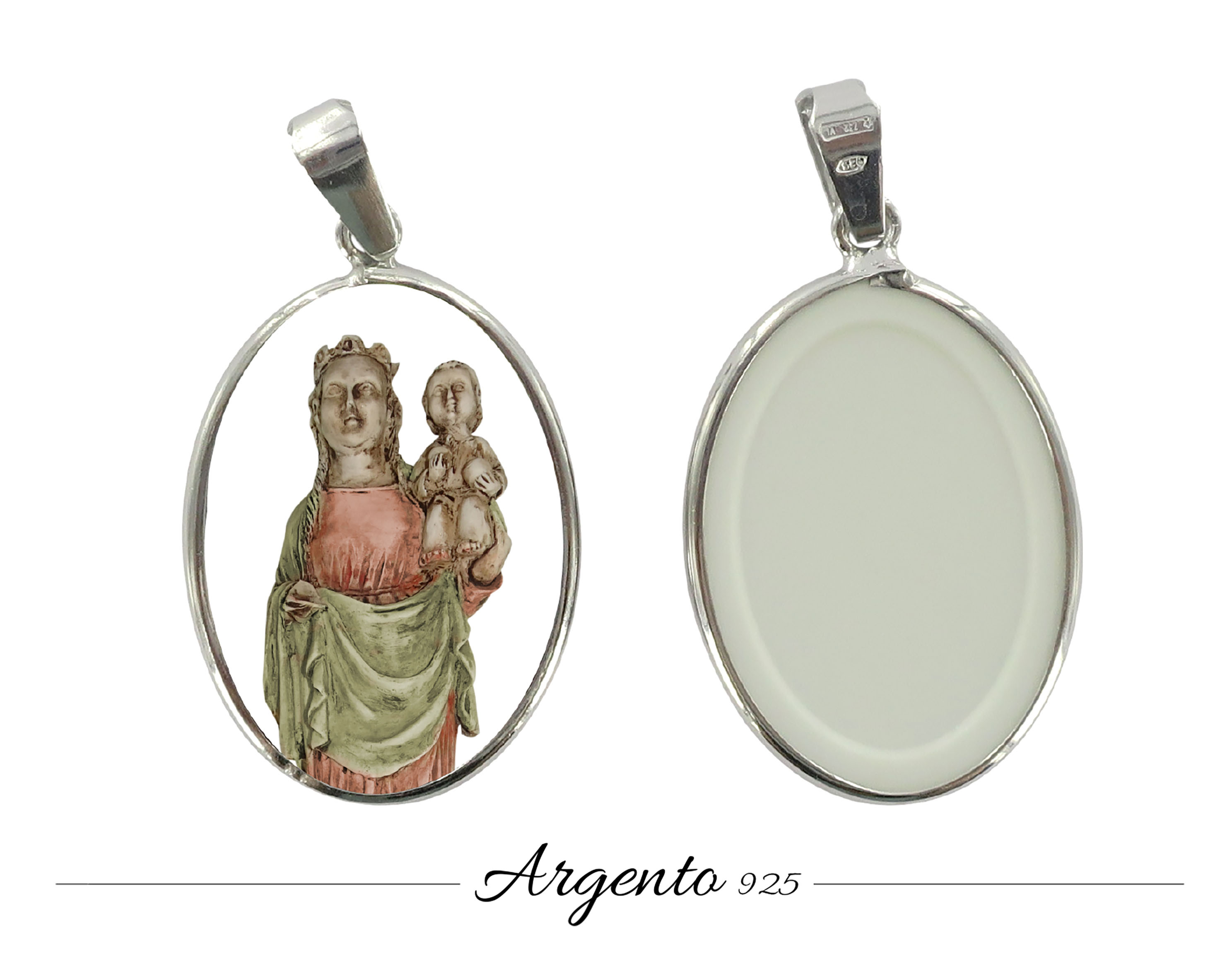 Medaglia Madonna basilica del Mar ovale in argento 925 e porcellana - 3 cm