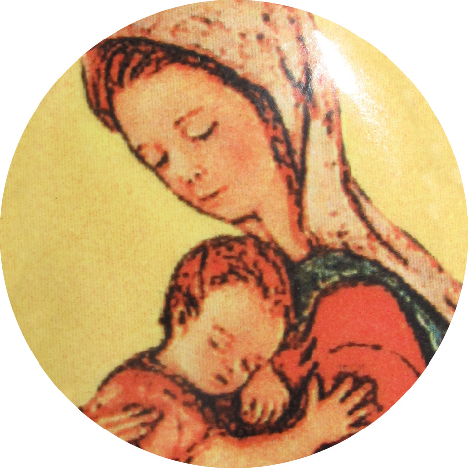 La medaglietta è in porcellana con stampata una immagine rappresentante Madonna con Bambino di Suor Angelica.