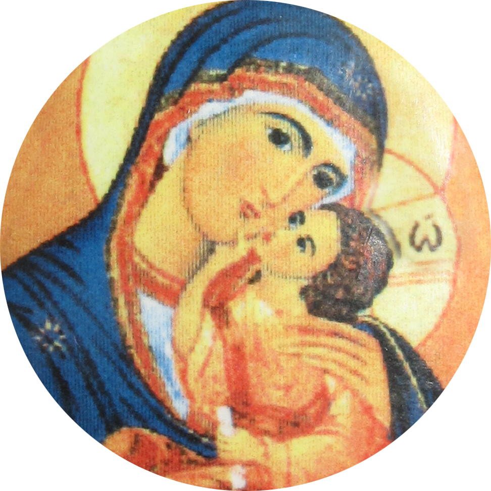 La medaglia è in porcellana con stampata una immagine rappresentante Madonna della Tenerezza.