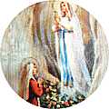 La medaglia è in porcellana con stampata una immagine rappresentante l'Apparizzione di Madonna di Lourdes a Bernadette Soubirous.