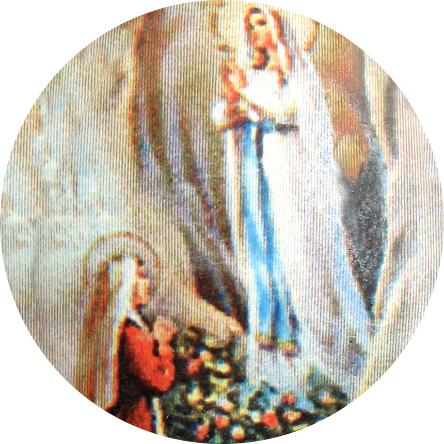 La medaglietta è in porcellana con stampata una immagine rappresentante l'Apparizzione di Madonna di Lourdes a Bernadette Soubirous.