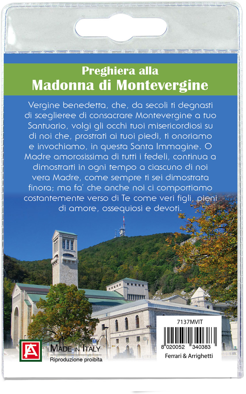 Medaglia Madonna di Montevergine con laccio e preghiera in italiano