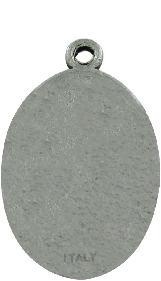 Medaglia ovale in metallo ossidato raffigurante la Madonna di Loreto di misura 2,5 x 1,5 cm.