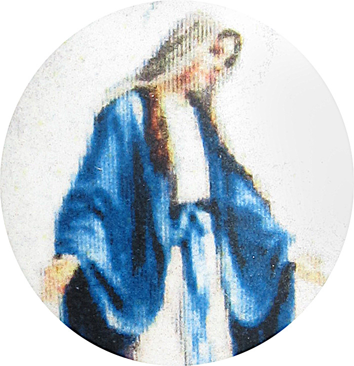 La medaglietta è in porcellana con stampata una immagine rappresentante Madonna Miracolosa.