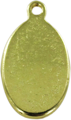 Medaglia raffigurante la Madonnina di Milano in metallo dorato. L'immagine è ricoperta da uno strato di resina trasparente che rende i colori lucidi e ben visibili. Il prodotto misura 1,5 cm ed è realizzato in ITALIA.