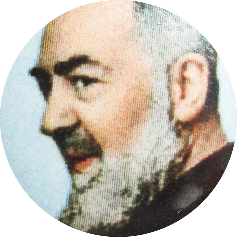 La medaglietta è in porcellana con stampata una immagine rappresentante San Pio.