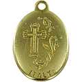 L'immagine è incastonata in una medaglia di metallo dorato contornata da strass che misura cm 3,5.