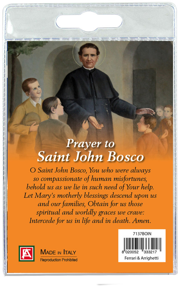 Medaglia San Giovanni Bosco con laccio e preghiera in inglese