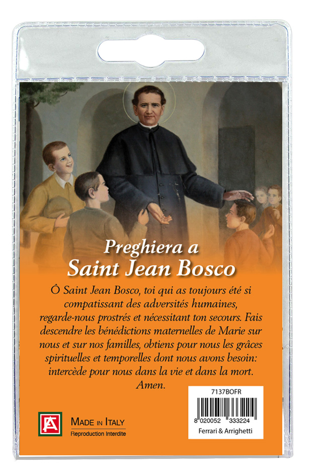 Medaglia San Giovanni Bosco con laccio in blister con preghiera in francese