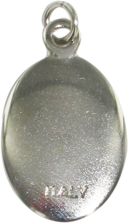 Medaglia raffigurante Padre Pio. L'immagine del Santo è ricoperta da uno strato di resina trasparente che rende i colori lucidi e ben visibili. Il prodotto misura 2,5 x 1,5 cm ed è realizzato in ITALIA.