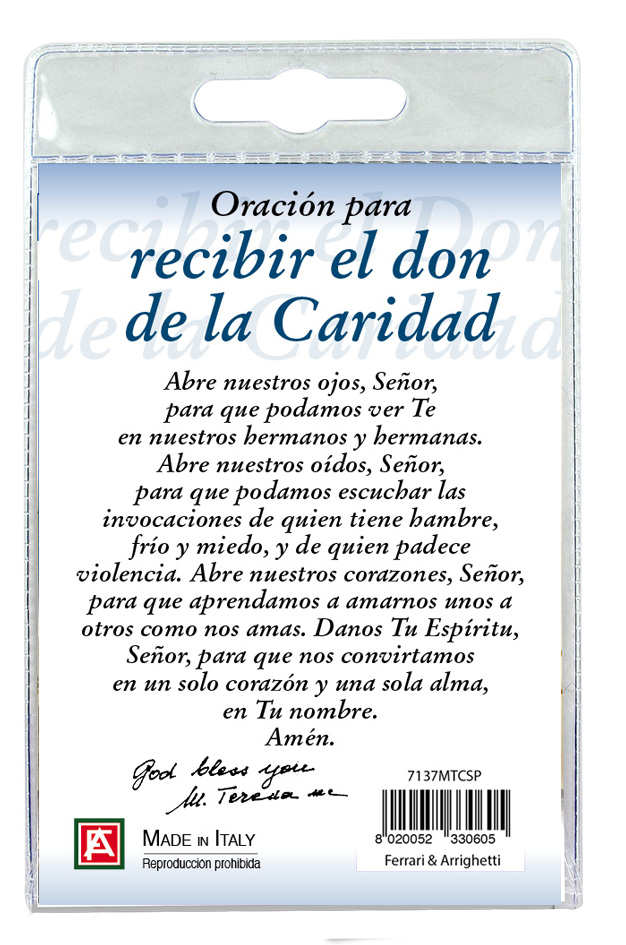 Medaglia Santa Madre Teresa di Calcutta con laccio e preghiera in spagnolo