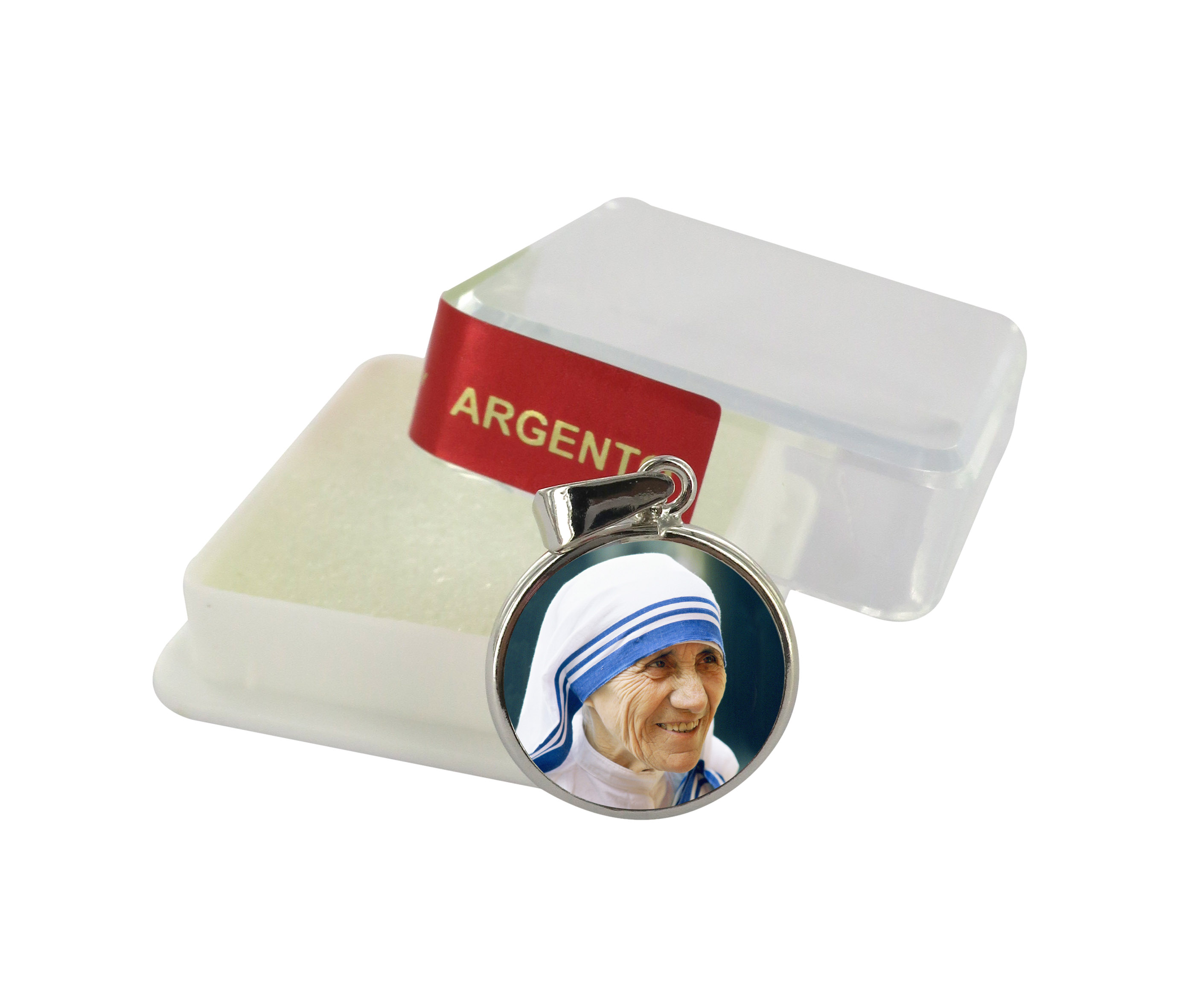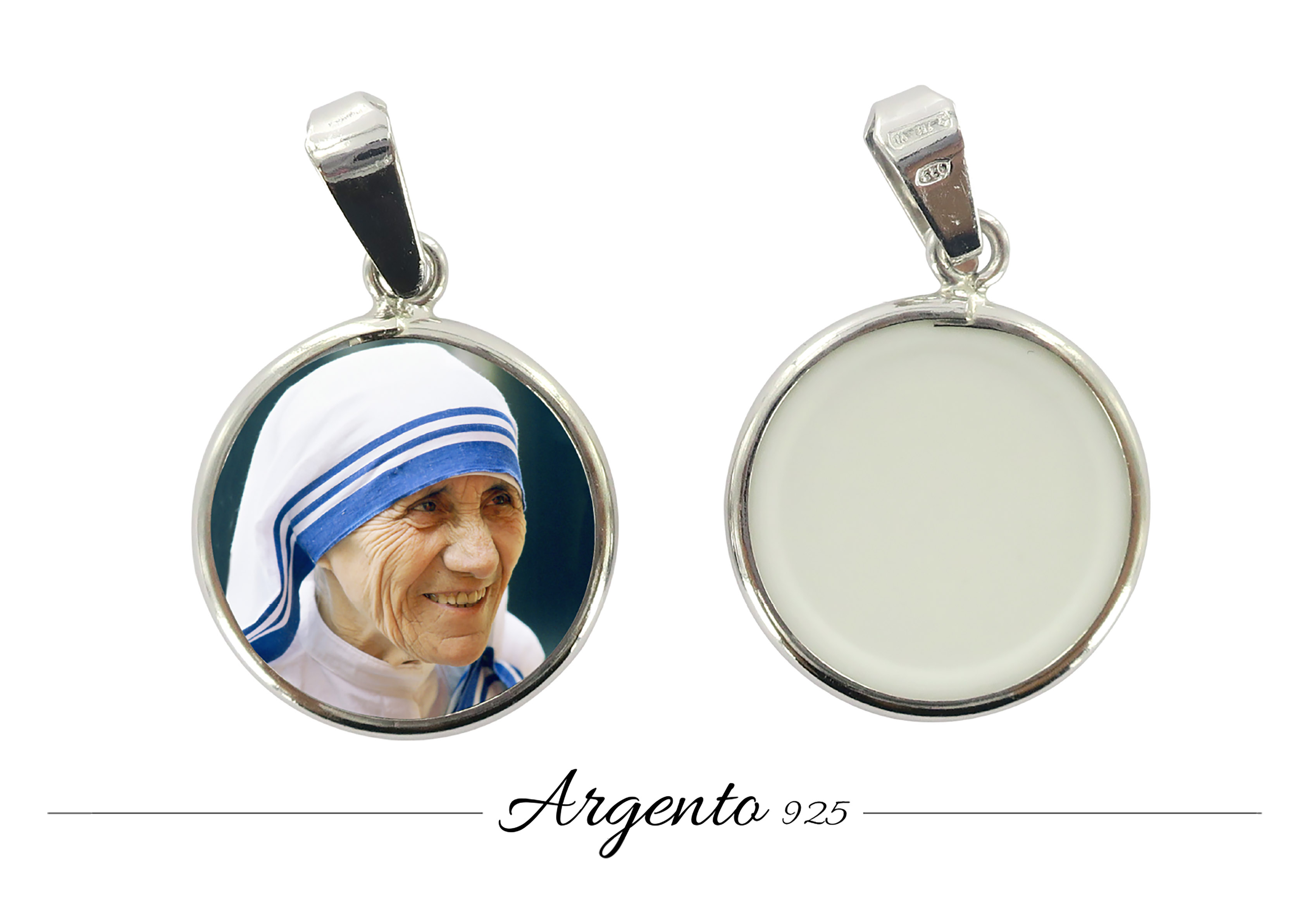 Medaglia Santa Madre Teresa di Calcutta in argento 925 e porcellana - 1,8 cm