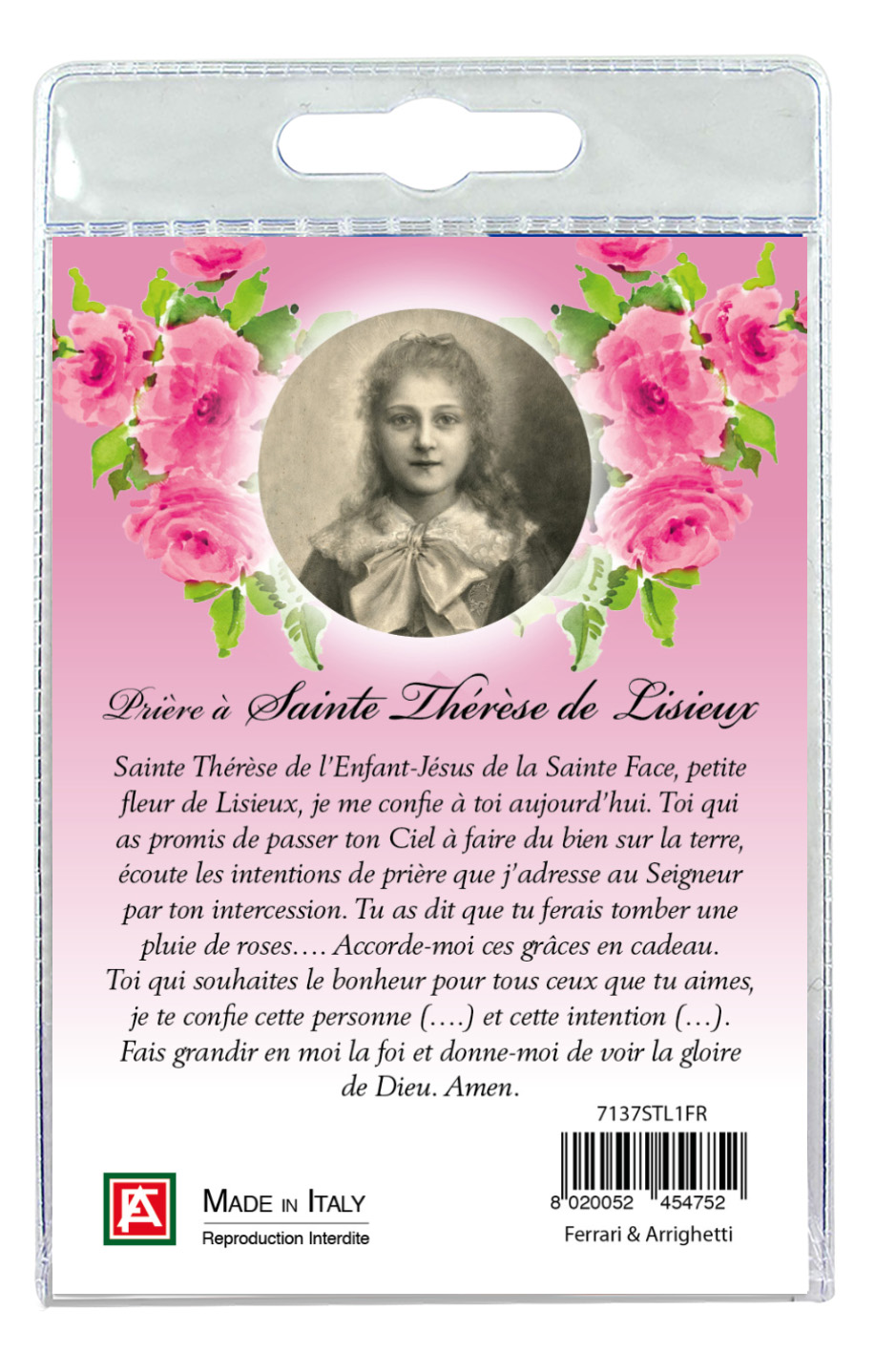 Medaglia Santa Teresa di Lisieux con laccio e preghiera in francese