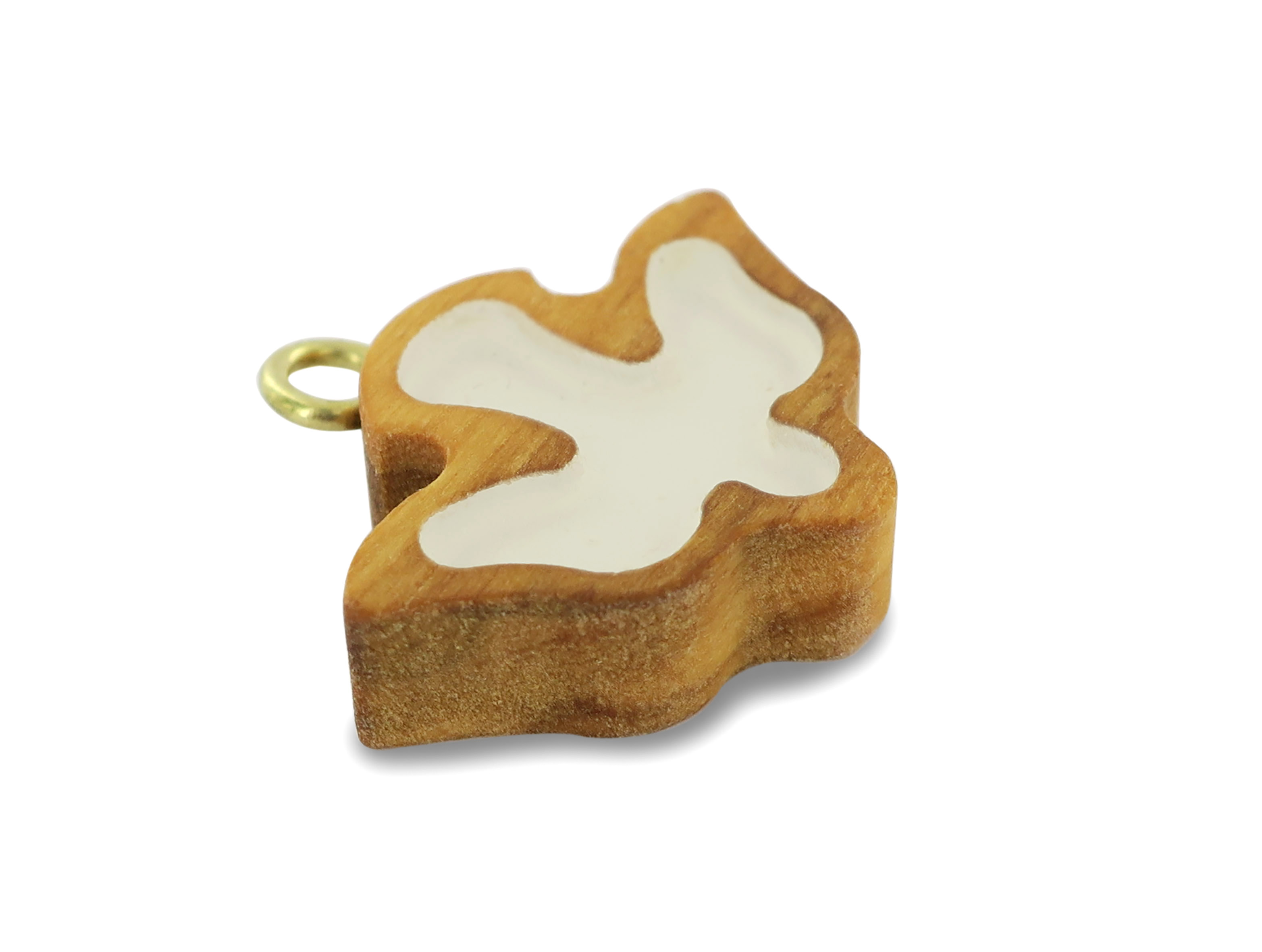 Bomboniera Cresima: Ciondolo Colomba in ulivo con smalto bianco e cordoncino - 2 cm