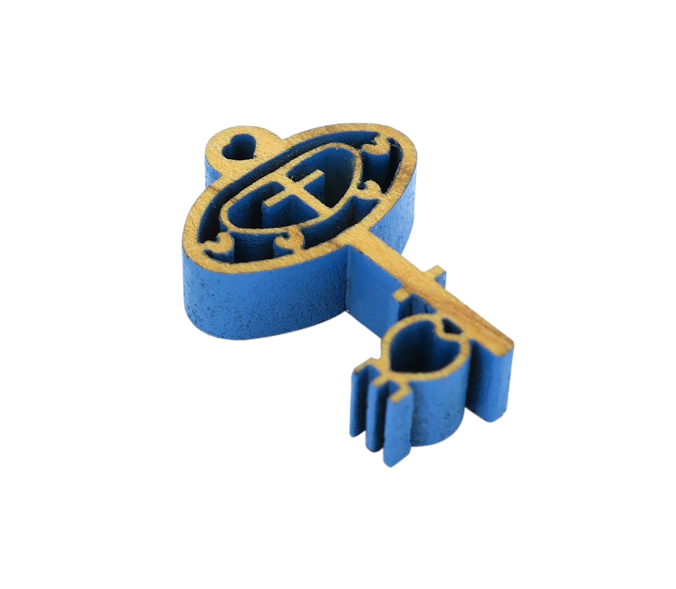 Ciondolo chiave in legno d'ulivo con profil colorato.