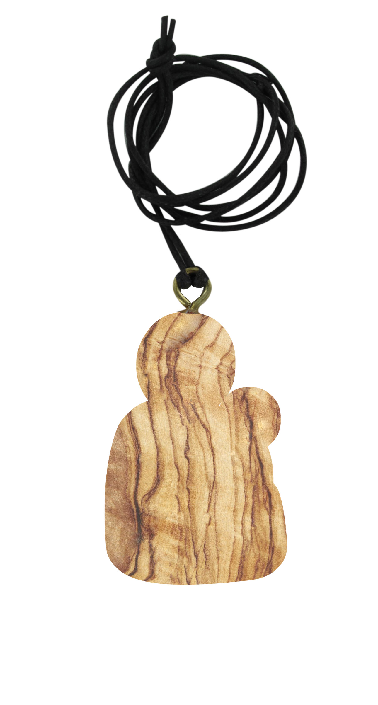 Ciondolo in legno d'ulivo con l'immagine serigrafata della Madonna del Divino Amore.