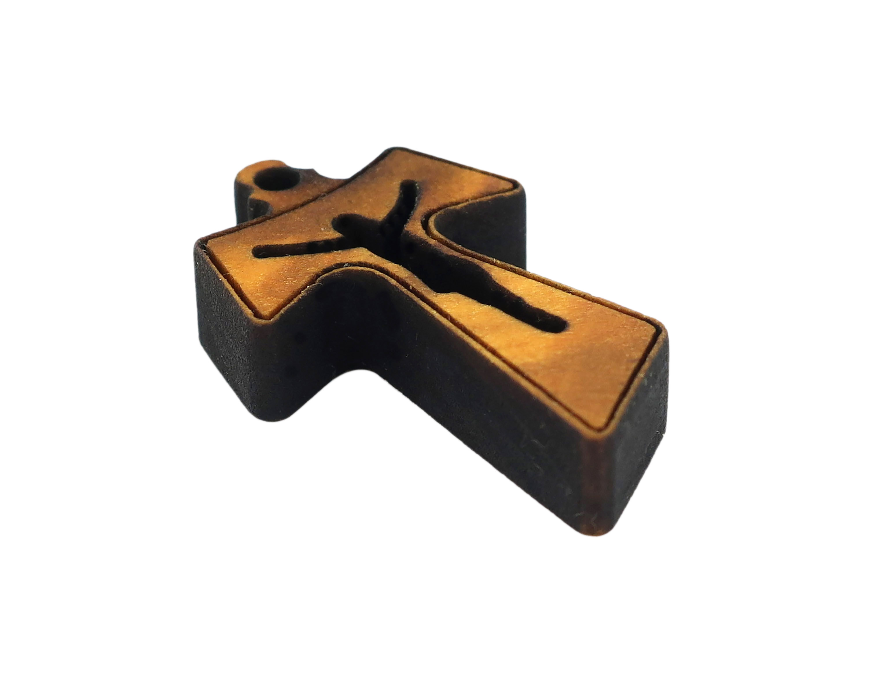 Croce Tau in legno di ulivo con Cristo traforato (croce di San Francesco d'Assisi) - 3 cm