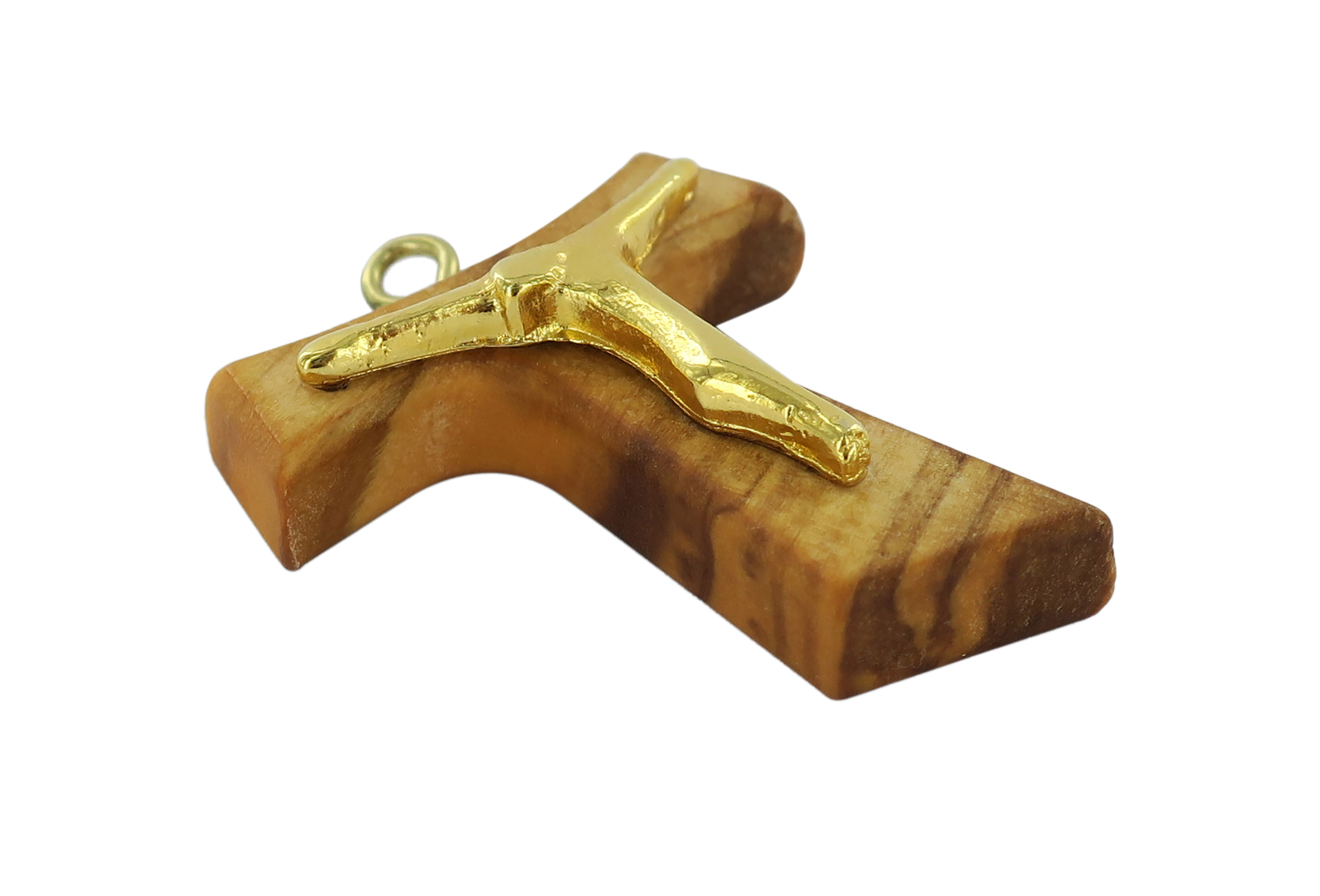 Croce Tau di San Francesco d'Assisi in legno d'ulivo con Cristo in metallo.
