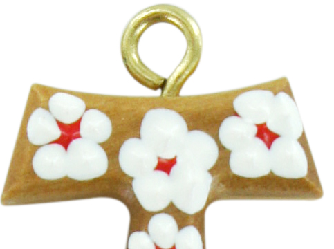 Tau in legno di ulivo con fiori bianchi senza laccio - 2 cm