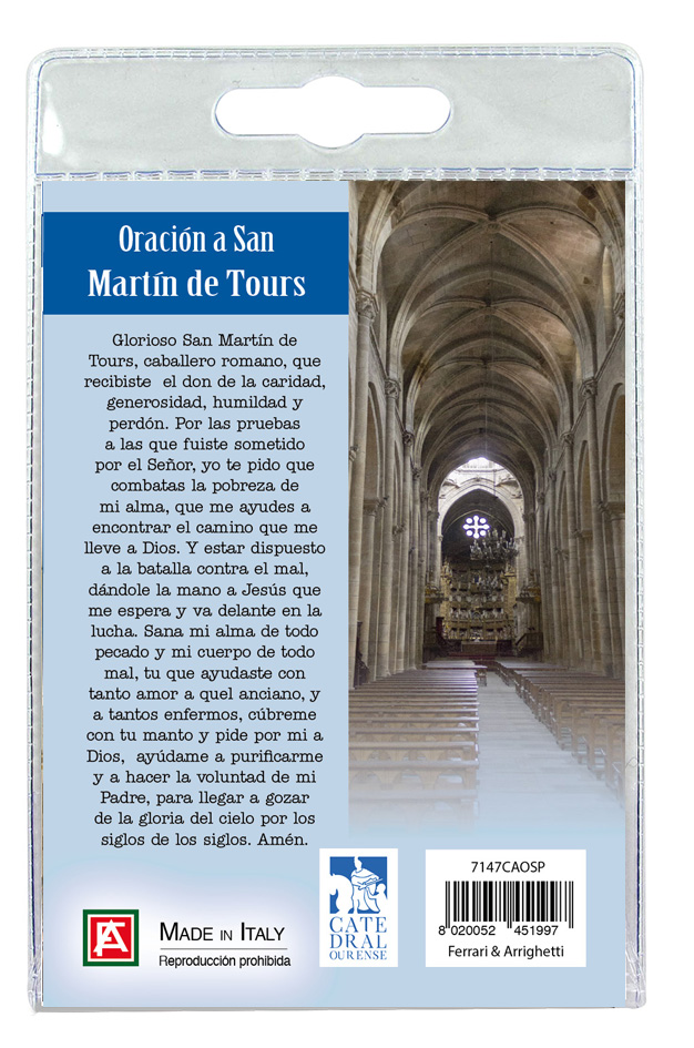 Il blister si presenta con all'interno un cartoncino rappresentante la Catedral de Ourense con una preghiera a lei dedicata (in SPAGNOLO).