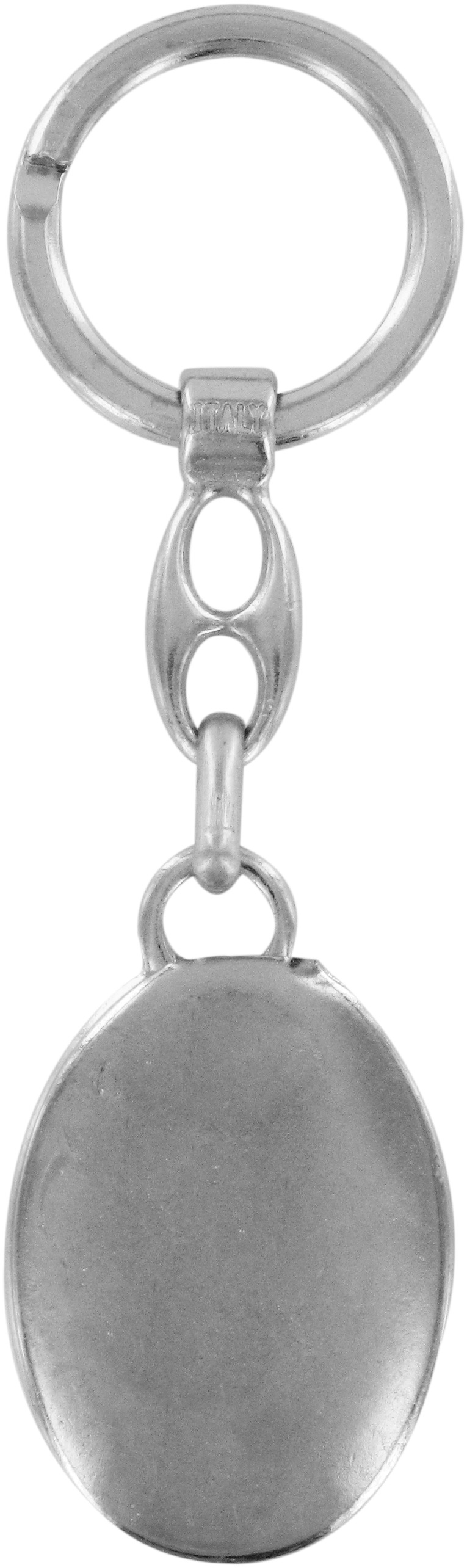 Portachiavi Croce San Benedetto ovale in metallo nichelato