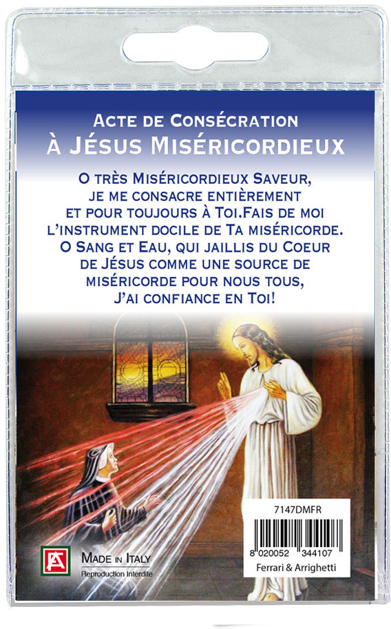 Il Portachiavi si presenta confezionata in un blister con all'interno un cartoncino con immagine della Divina Misericordia e con una citazione sul retro del cartoncino stesso.