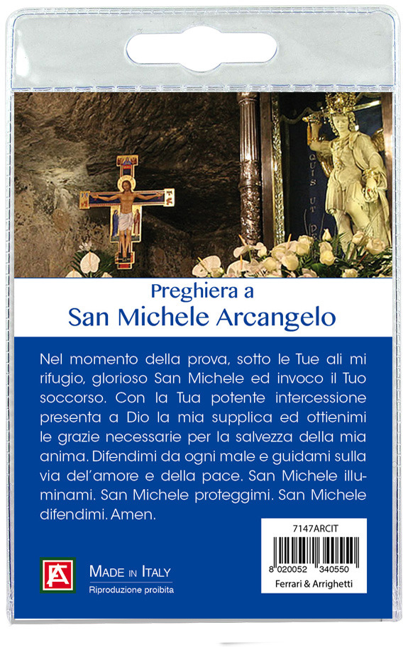 Il blister si presenta con all'interno un cartoncino, rappresentante San Michele Arcangelo
