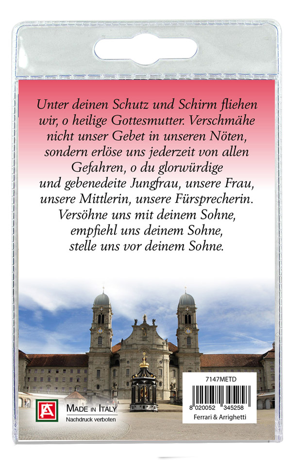 Sul retro del cartoncino vi è stampata una preghiera dedicata a Madonna di Einsiedeln.