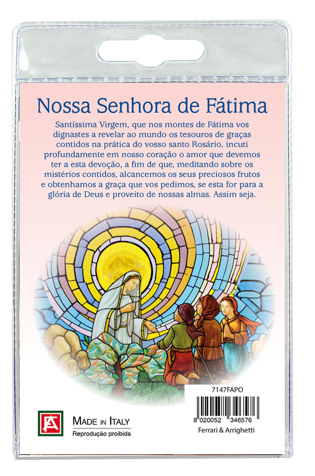 Sul retro del cartoncino vi è stampata una preghiera in portoghese dedicata alla Madonna.