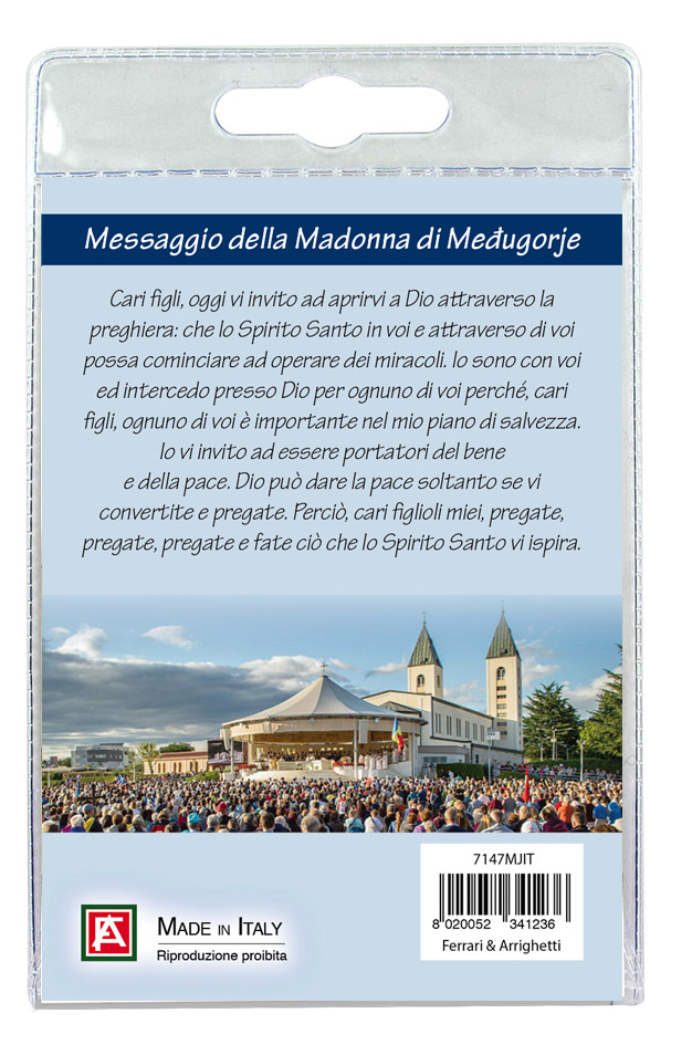 Il blister si presenta con all'interno un cartoncino, rappresentante la Madonna di Medjugorje