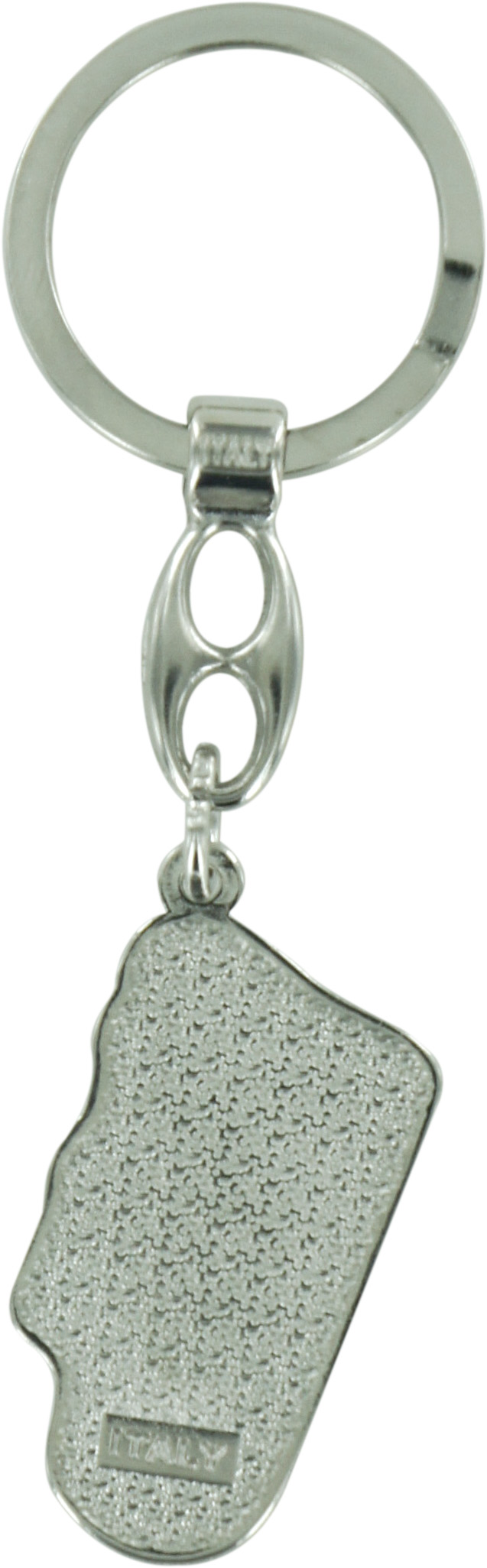 Il metallo è nichelato e il portachiavi si presenta imbustato in astuccio trasparente.