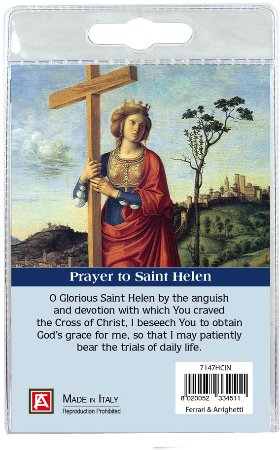 Il blister si presenta con all'interno un cartoncino rappresentante Sant Helen e Madonna Ausiliatrice, con una preghiera dedicata a Sant Helen.