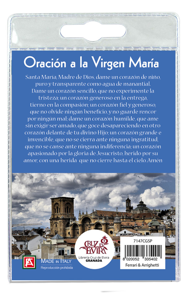 Portachiavi Vergine della Cattedrale di Granada con preghiera in spagnolo