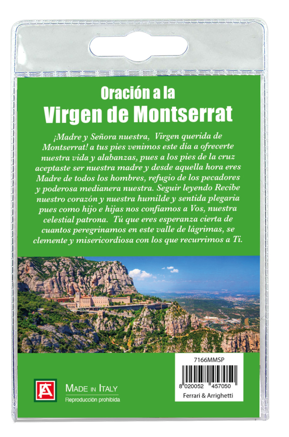 Realizzato in Italia viene consegnato in una bustina in plastica trasparente con all'interno una preghiera,in spagnolo, dedicata alla Vergine di Montserrat.