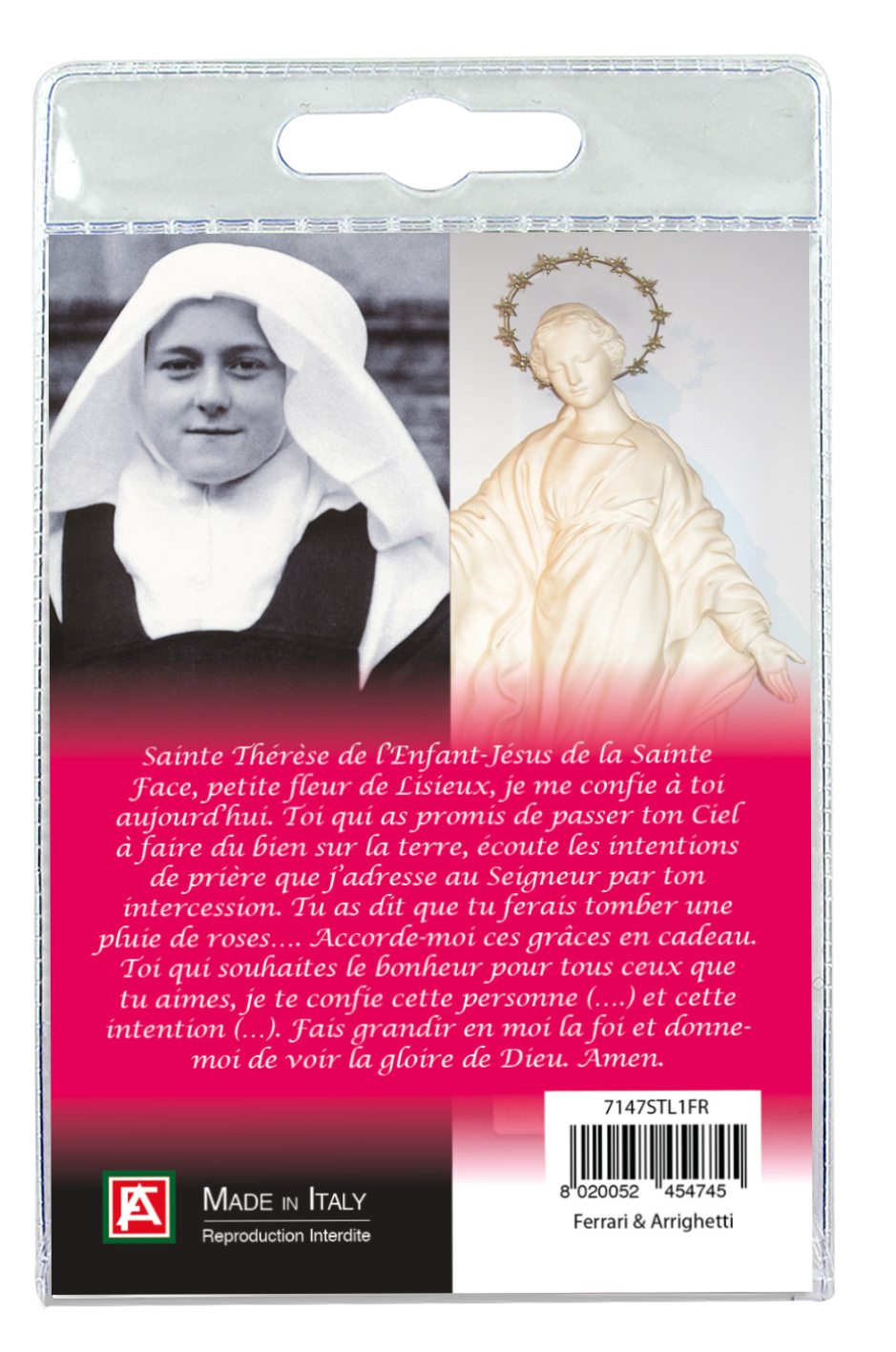 Portachiavi doppio Santa Teresa di Lisieux con preghiera in francese