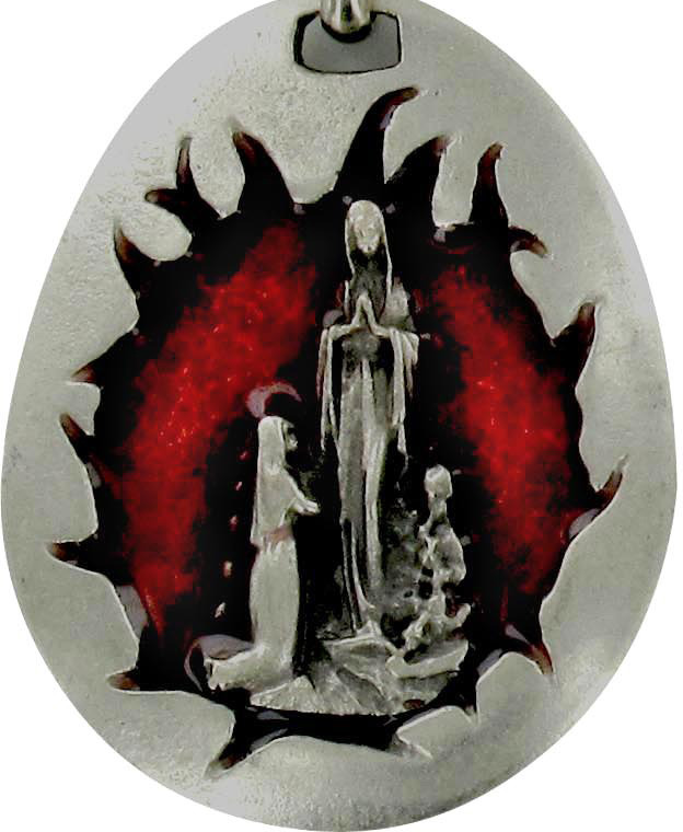 STOCK: Portachiavi Madonna di Lourdes a goccia con smalto rosso