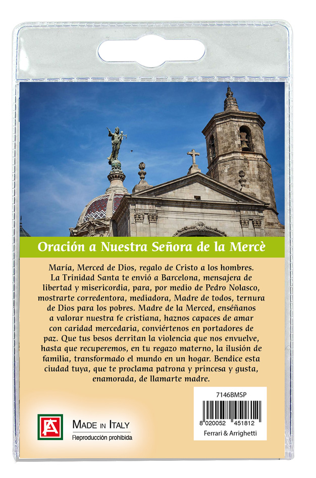 Il Portachiavi è confezionato in un blister con all'interno un immagine della Basilica sul cui retro e' stampata una preghiera in spagnolo.