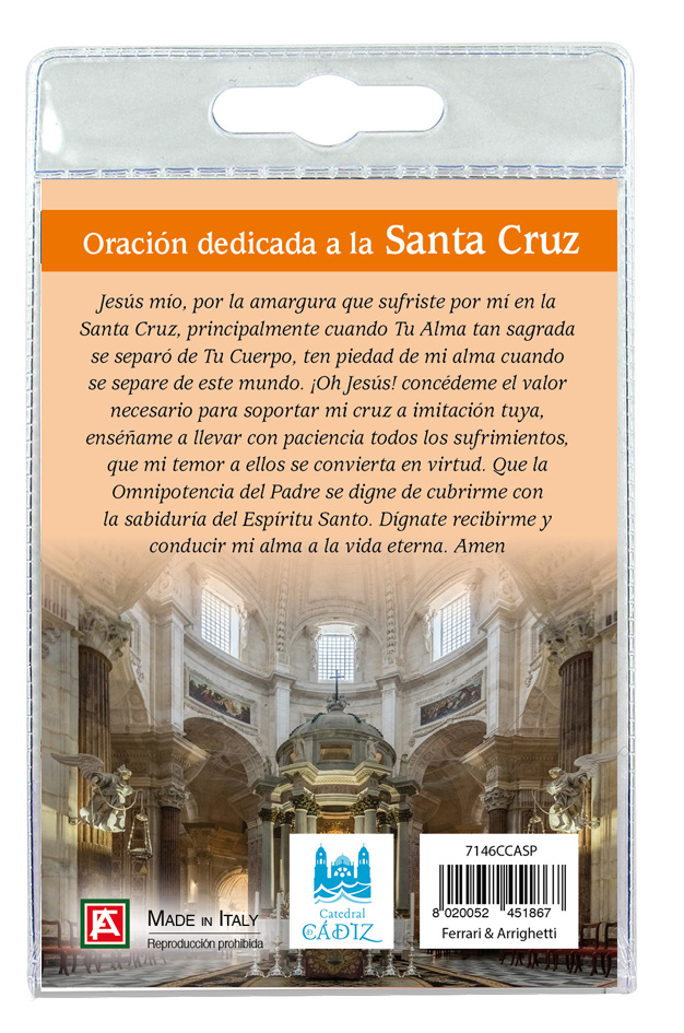 Portachiavi Catedral de Cadiz con decina in ulivo e preghiera in spagnolo