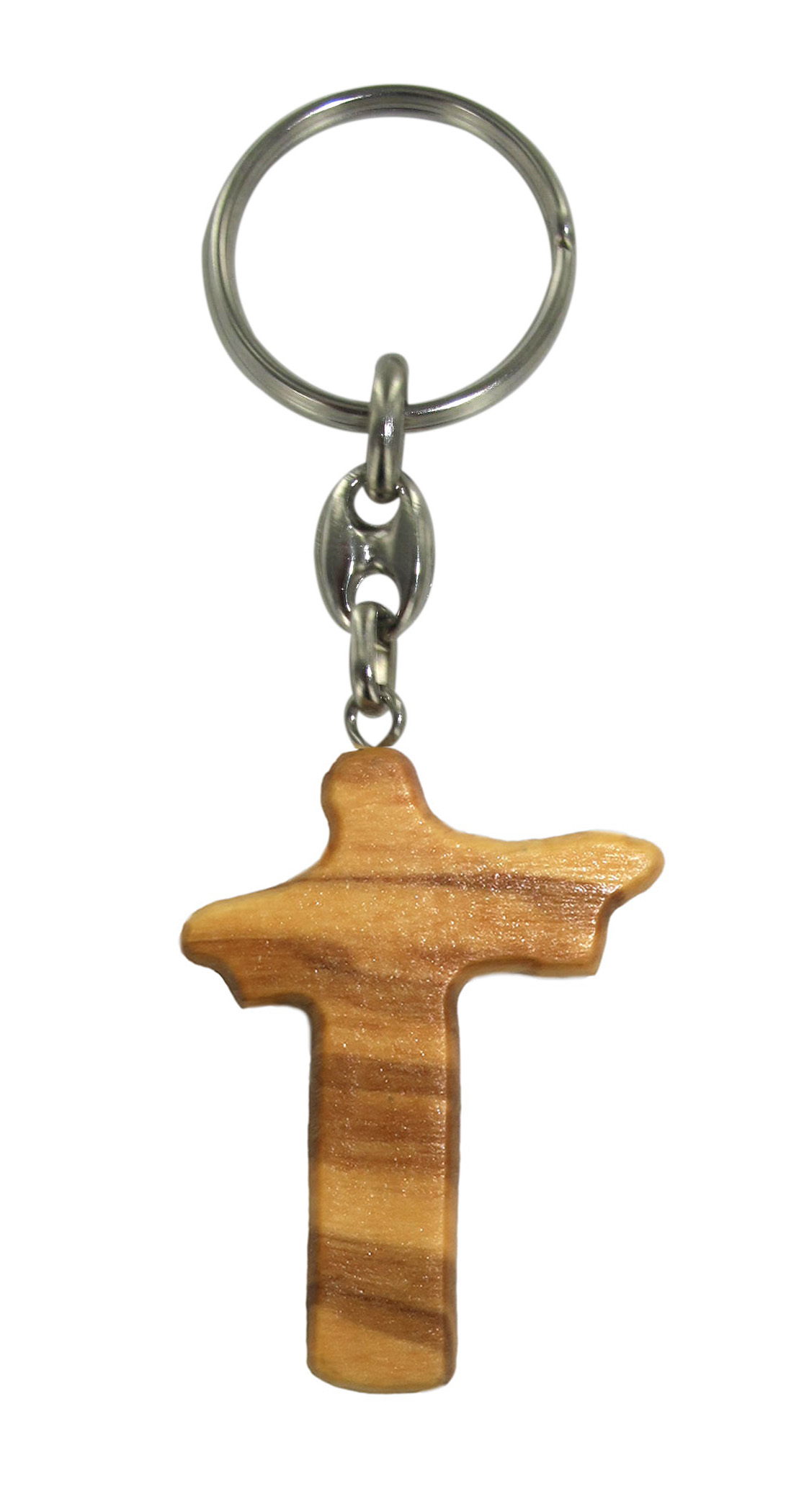 Portachiavi sagomato in legno d'ulivo con l'immagine serigrafata del Cristo rei.