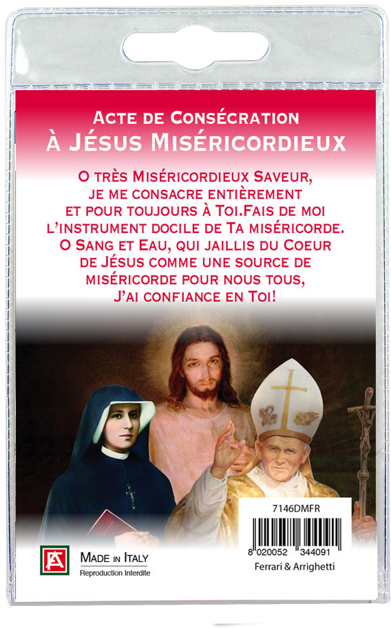 Il Portachiavi è confezionato in un blister con all'interno un immagine di Gesù sul cui retro è stampata una preghiera a lui dedicata *(in francese).
