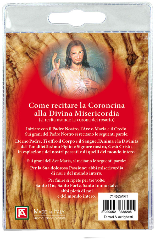 Portachiavi Divina Misericordia (Roma) con decina in ulivo e preghiera in italiano